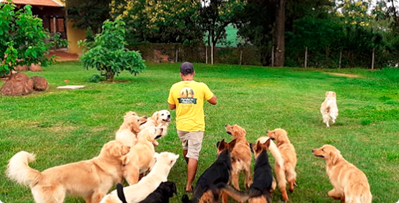 Aqui, seu cão é tratado como membro da família: acomodações aconchegantes, rotina personalizada, ambiente calmo e cercado pela natureza.